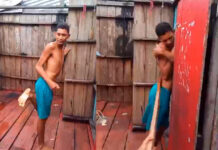 VÍDEO: Suspeito de roubar na Compensa, leva surra de pau no ‘tribunal do crime’