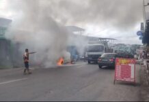 Família de vítima atea fogo no veículo do suspeito em Manaus