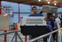 Com apoio de Joana Darc, cachorro atacado com terçado chega em Manaus para atendimento...