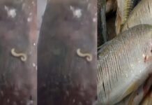 Um pescador compartilhou um vídeo nas redes sociais onde mostra larvas dentro de um peixe que seria consumido por ele e sua família no...