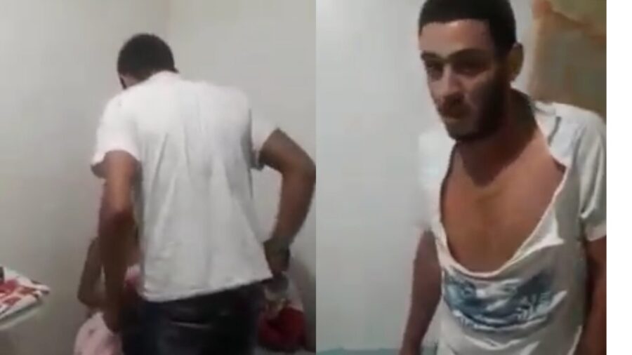 O homem parece transtornado e supostamente sobre efeitos de drogas.