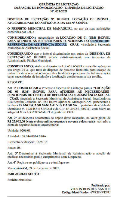 Amazonas- Cheiro de trambicagem no ar! O prefeito de Manaquiri Jair Souto (MDB), juntamente com seus botões e perdendo o juízo, dispensou licitação para aluguel de 10 imóveis, que juntos somam a bagatela de R$ 187 mil reais.