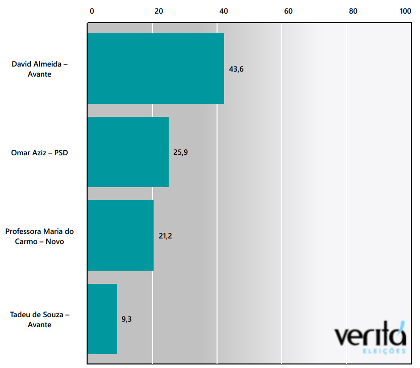 De acordo com o levantamento feito pelo Instituto Veritá, 43% dos eleitores questionados afirmaram que “de jeito nenhum”, votariam em David Almeida.