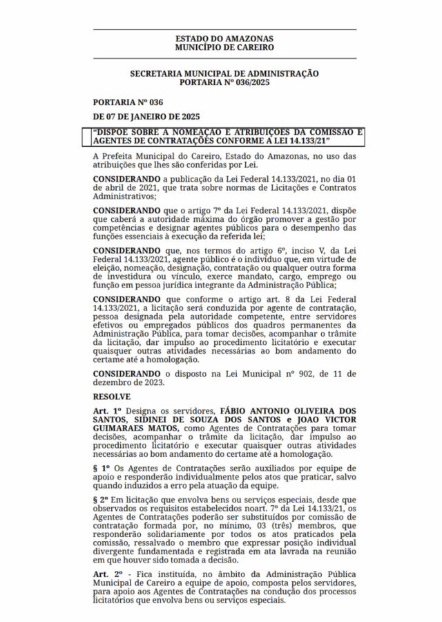 De acordo com documentos homologados no Diário Oficial dos Municípios (DOM), a secretária municipal de administração, Daisy Gusmão, resolveu contratar o próprio marido, Mário Cavalcante Matos Júnior, para trabalhar centro da Prefeitura do Careiro Castanho, por um salário de R$ 5.302,00 (cinco mil, trezentos e dois reais).