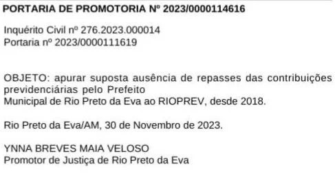 Após o Ministério Público do Amazonas (MP-AM), um inquérito civil público para investigar o prefeito de Rio Preto da Eva Anderson Sousa, por falta de repasses do Instituto de Previdência do Município de Rio Preto da Eva, o “RIOPrev”, que não ocorrem desde 2018, agora Anderson deve pedir autorização para os vereadores para parcelar a dívida.