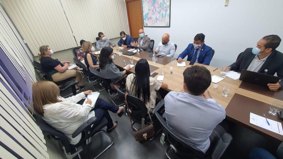 Representantes da saúde do Governo do Estado e do Município reuniram-se, nesta quinta-feira (07/11), com as equipes do Governo Federal para alinhamento das estratégias de enfrentamento do recrudescimento do novo coronavírus (Covid-19) no estado.