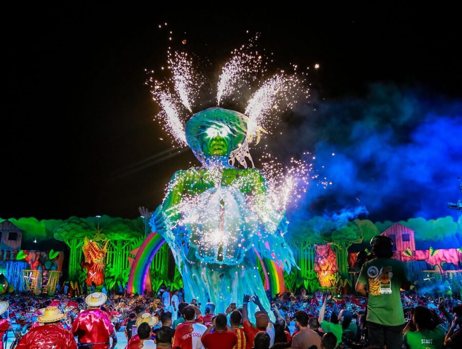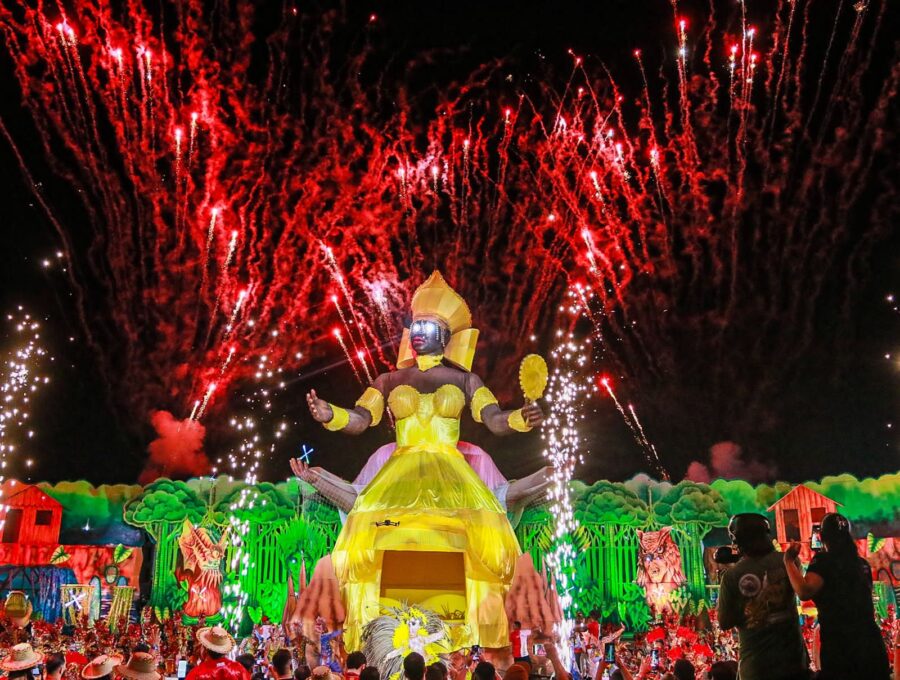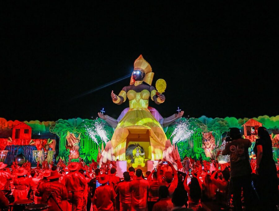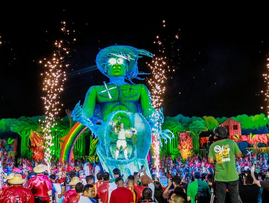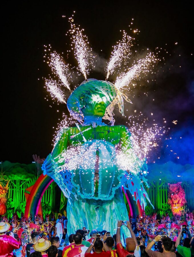 A apresentação também impressionou pelo uso de tecnologia, efeitos pirotécnicos e alegorias imponentes. Os itens oficiais e personagens da ciranda surgiram em estruturas gigantes, acompanhadas de fogos frios e jogos de luzes, criando um clima mágico. O espetáculo ainda trouxe referências religiosas, unindo o catolicismo e as matrizes africanas, com destaque para a representação de Oxum, orixá associado às águas doces, como um dos símbolos mais impactantes da noite.