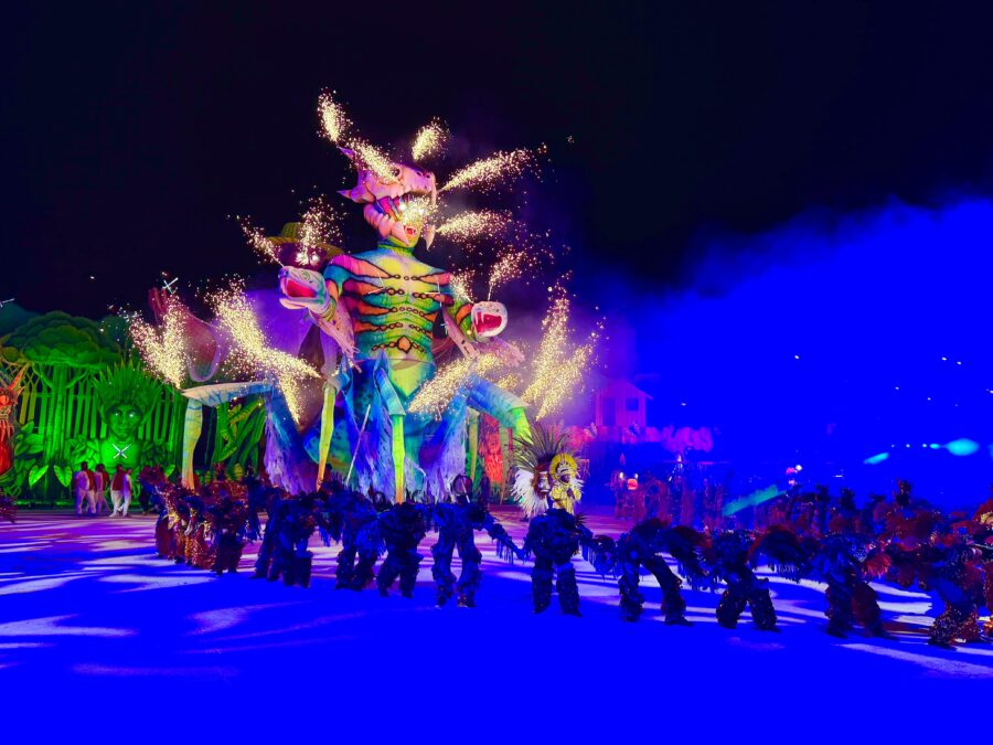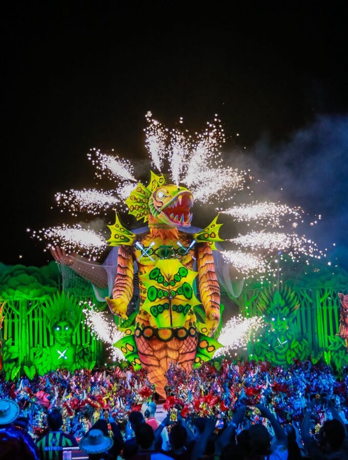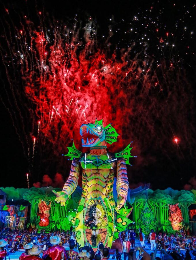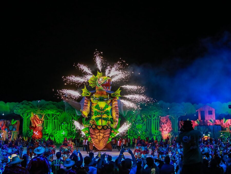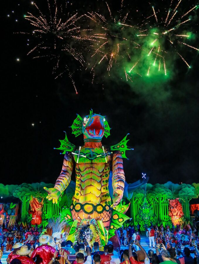 A apresentação também impressionou pelo uso de tecnologia, efeitos pirotécnicos e alegorias imponentes. Os itens oficiais e personagens da ciranda surgiram em estruturas gigantes, acompanhadas de fogos frios e jogos de luzes, criando um clima mágico. O espetáculo ainda trouxe referências religiosas, unindo o catolicismo e as matrizes africanas, com destaque para a representação de Oxum, orixá associado às águas doces, como um dos símbolos mais impactantes da noite.