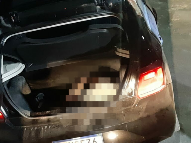 A equipe foi até o local e ao fazer a vistoria encontrou um cadáver dentro do porta-malas com um bilhete escrito “Taí, Marisa. Tem presunto, o barriga. Sapão representou.”