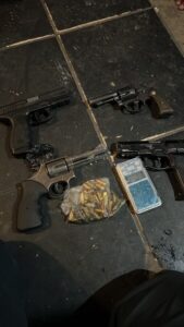 Com o grupo, foram apreendidas quatro armas de fogo — sendo duas pistolas, calibres .40 e 9mm, e dois revólveres calibre .38 — além de dois carregadores, 71 munições de diversos calibres, cinco celulares, porções de drogas (incluindo cocaína, maconha e oxi), uma balança de precisão e outros materiais relacionados ao tráfico.