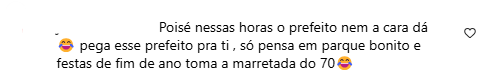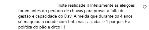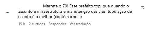 “Esse prefeito top, que quando o assunto é infraestrutura e manutenção das vias, tubulação de esgoto é o melhor (contém ironia)”, disse outro internauta.