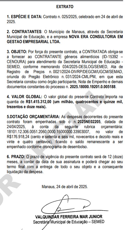 É mais um contrato milionário firmado por David Almeida, para fornecimento de serviços e materiais para a Semed, com suspeitas de irregularidades e que será o investigado pelo Ministério Público de Contas (MPC).