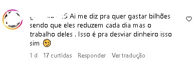 “Pra que gastar bilhões, sendo que eles reduzem cada dia mais o trabalho deles? Isso é pra desviar dinheiro, isso sim”, disse um internauta.