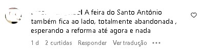 “A Feira do Santo Antônio também fica ao lado, totalmente abandonada, esperando a reforma até agora e nada”, relembrou outro internauta.