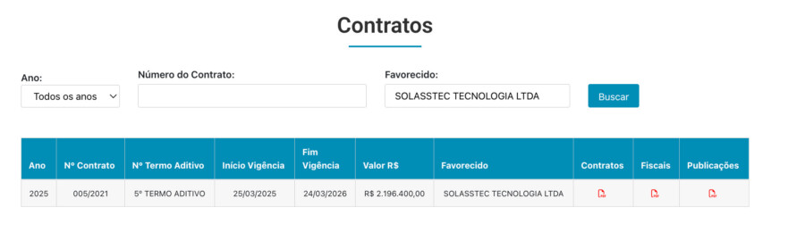 Ao todo, a empresa SOLASSTEC TECNOLOGIA LTDA, recebeu da gestão David Reis o valor de R$ 4.134.400,00 (quatro milhões, cento e trinta e quatro mil e quatrocentos reais) em apenas dois contratos.