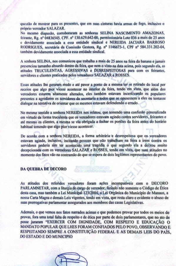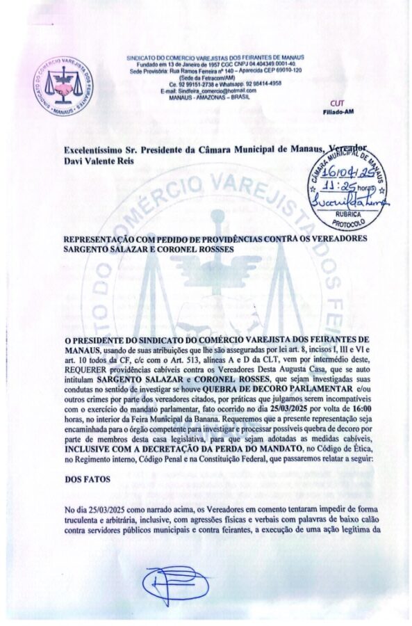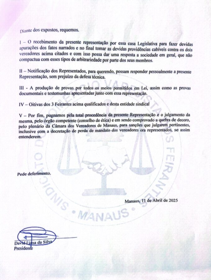 O pedido de cassação dos vereadores partiu do presidente do sindicato dos feirantes Davi Lima da Silva, mais conhecido como “Davi dos Feirantes”, preso durante operação da polícia civil, suspeito de participar de um grupo que extorquia empresários no Centro de Manaus e foi acusado de agredir fisicamente um trabalhador na Feira Manaus Moderna, em 2015, sendo flagrado por câmeras de segurança no momento em que desfere um tapa no rosto de um feirante.
