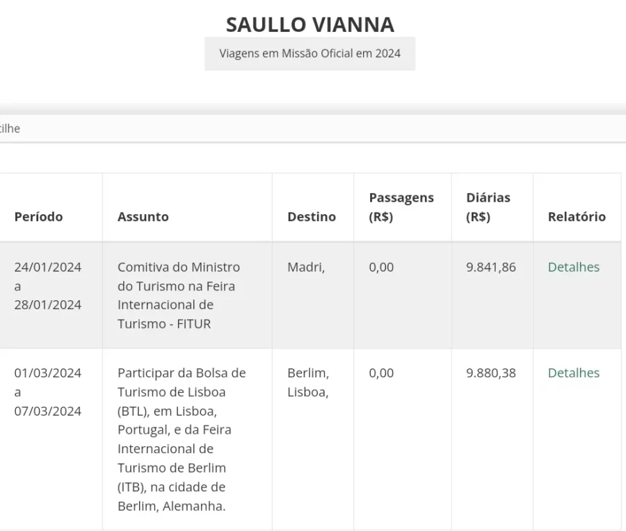 Vianna gastou dos cofres públicos, segundo dados da Câmara, R$ 2.187,08 (dois mil, cento e oitenta e sete reais e oito centavos), por diária, ou seja, R$ 9.841,86 (nove mil, oitocentos e quarenta e um reais e oitenta e seis centavos), em apenas quatro dias, para participar da Feira Internacional de Turismo (FITUR) em janeiro de 2024 em Berlim.