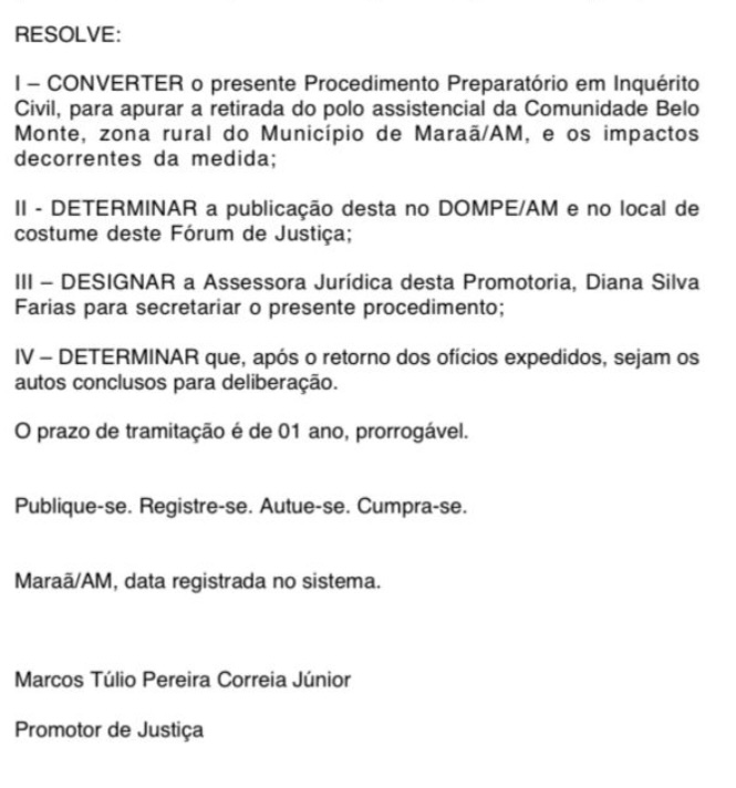 O prefeito Pastor Edir Castelo Branco (Republicanos), vai retirar um polo assistencial de uma Comunidade Rural de Belo Monte em Maraã, no interior do Amazonas, a revelia do Ministério Público do Amazonas (MP-AM), que já tinha se posicionado contra a desativação do polo.