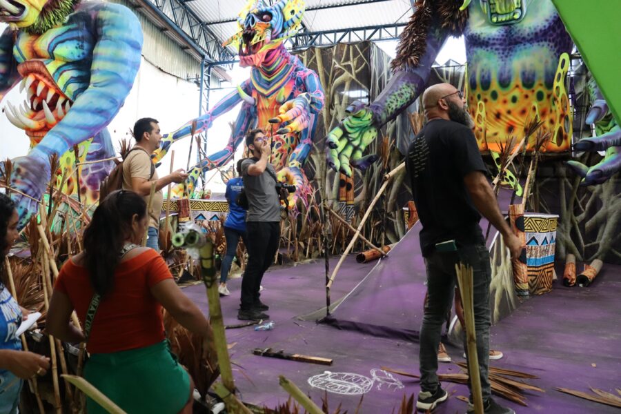 Durante a programação, os alunos participaram de uma palestra com o presidente do Conselho de Arte do Boi Caprichoso, Ericky Nakanome, e realizaram uma visita técnica aos galpões da agremiação azulada, onde puderam identificar resíduos com potencial de reaproveitamento.