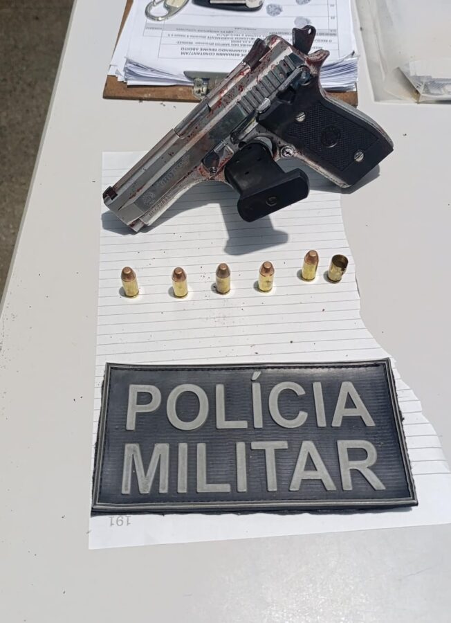 Com ele foram apreendidas uma pistola com cinco munições calibre 40 e uma motocicleta Honda