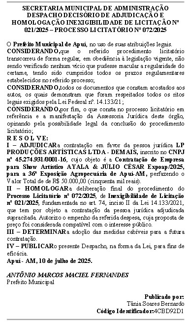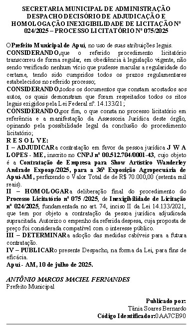 A Prefeitura de Apuí já havia gasto, segundo o Diário Oficial dos Municípios (DOM), cerca de 514 mil reais em contratações de artistas com dispensa de licitação.