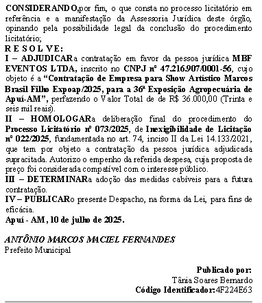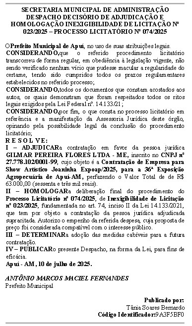Mesmo enfrentando sérias acusações de irregularidades em sua gestão, o prefeito Antônio Marcos Maciel Fernandes, mais conhecido como “Marquinhos Macil” (MDB), vai gastar milhões em contratações com dispensa de licitação para a 36ª Exposição Agropecuária de Apuí (Expoap/2025).