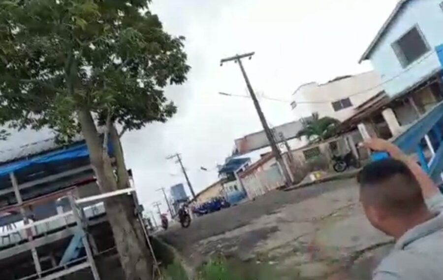 Nas imagens é possível ver o momento em que o vento levanta vários objetos e populares chegam a correr para se afastar do fenômeno.
