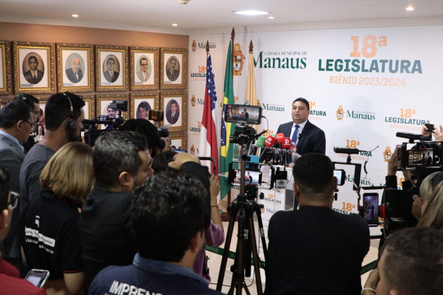 Na manhã desta quarta-feira (12/07), após a última Sessão Plenária que antecede o recesso parlamentar, o presidente da Câmara Municipal de Manaus (CMM), vereador Caio André (Podemos), apresentou à imprensa os números alcançados e ações executadas pela Casa Legislativa no primeiro semestre de 2023; e projetou objetivos para a segunda metade do ano.