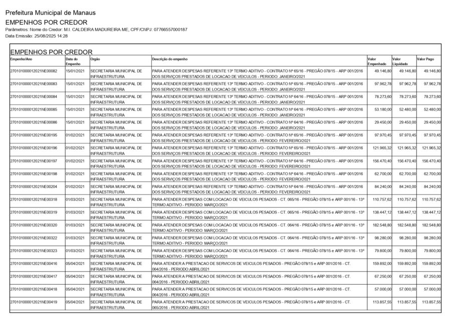 A Prefeitura de Manaus empenhou pagamentos entre os anos de 2021 e 2023 para a empresa de familiares de Wanderley Monteiro, mas em 2024, o prefeito chegou a emprenhar os valores a empresa M. I. CALDEIRA LOCAÇÕES, que não foram pagos, levando a revolta do parlamentar com seu aliado.