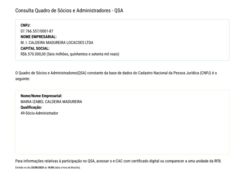 Em uma pesquisa ao Portal da Transparência, mostra que a empresa M. I. CALDEIRA LOCAÇÕES, de propriedade da mãe de Wanderley Monteiro, recebeu mais de R$ 22,5 milhões de reais a Maria Izabel Caldeira Madureira.