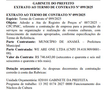 Além do alto valor investido pela Prefeitura Municipal de Anamã, o que chama atenção neste contrata é que a empresa WE ARE ONE LTDA, beneficiada com a licitação, tem como principal atividade econômica, a venda de material de informática.