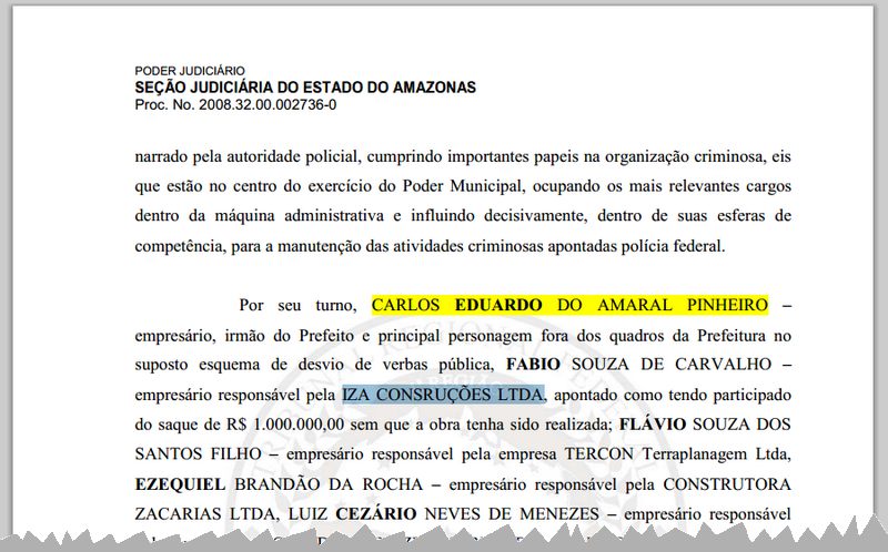 Segundo o Ministério Público Federal (MPF), a empresa IZA CONSTRUÇÕES E COMÉCIO LTDA foi denunciado por desvio de R$ 25 milhões em fraudes nas licitações do município, que chegaram a 178 licitações irregulares.