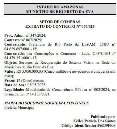 A prefeita Professora Socorro Nogueira (UB), vai gastar quase R$ 6 milhões para uma empresa recuperar o sistema viário no município de Rio Preto da Eva, na Região Metropolitana de Manaus.