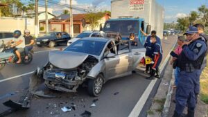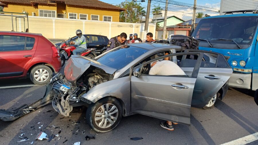 Engavetamento com cinco veículos deixa duas pessoas feridas na avenida das Torres, em Manaus