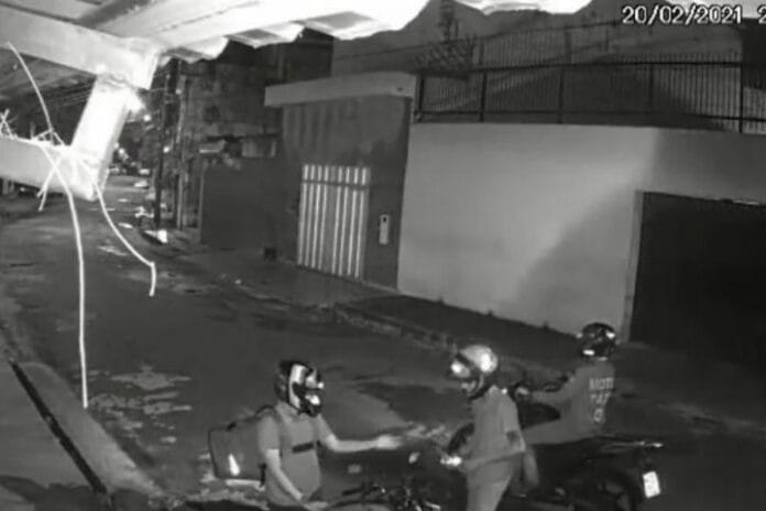 A câmera de segurança de uma residência gravou o momento da ação criminosa. Nas imagens podemos vê o momento que a vítima é abordada pela dupla que estava a mão armada, ele não resistiu ao assalto, entregou o seu celular, mas o assaltante insiste em levar a moto do trabalhador e até a bolsa térmica, que estava com a comida de cliente do delivery.