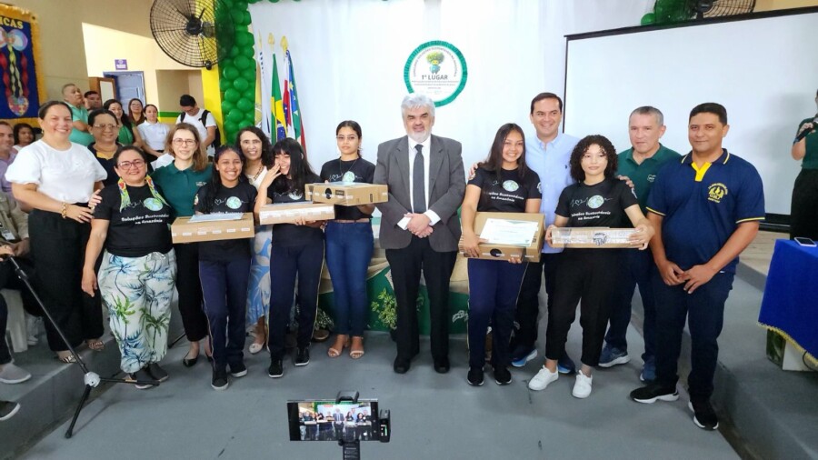 Os alunos da Escola Estadual Geny Bentes de Jesus, em Parintins (a 369 km de Manaus), receberam na última semana o prêmio de primeiro lugar do concurso Soluções Sustentáveis, promovido pela Escola de Contas Públicas (ECP) do Tribunal de Contas do Amazonas (TCE-AM). A premiação foi entregue pessoalmente pelo conselheiro do TCE-AM e coordenador-geral da ECP, Júlio Pinheiro.
