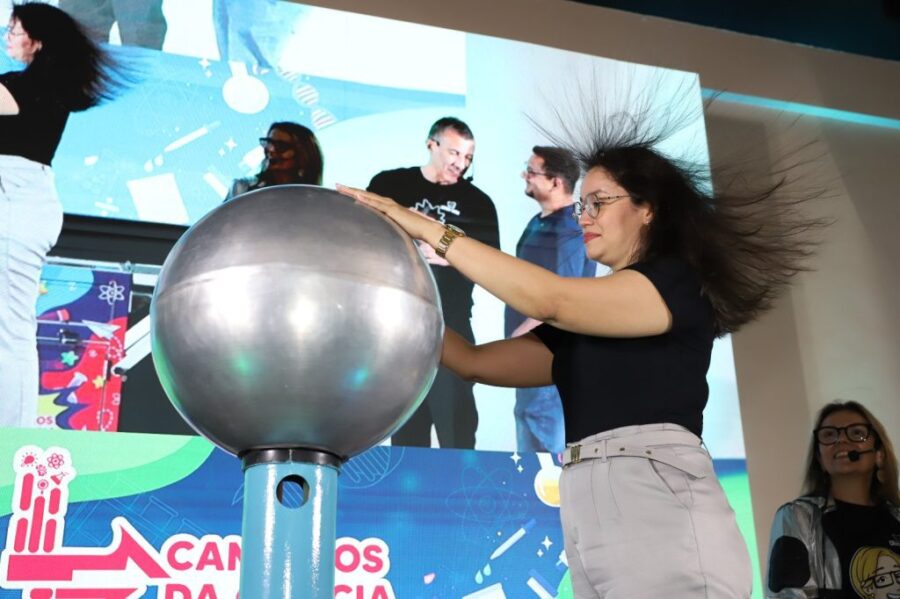 O diretor da Escola Estadual (EE) Tiradentes, Rodrigo Sales, participou de um experimento realizado no palco e destacou que a dinâmica, se repetida em sala de aula, vai atrair ainda mais a atenção dos estudantes.