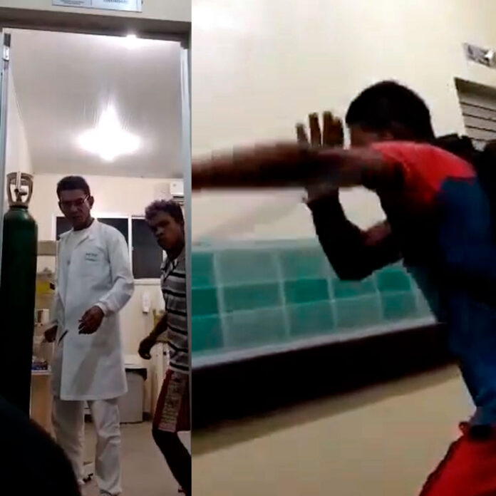 Um homem foi agredido por um técnico de enfermagem em uma unidade hospitalar de Eirunepé, interior do Amazonas. Um paciente que presenciava a cena, filmou e repassou o vídeo para a redação do Portal Abutre.