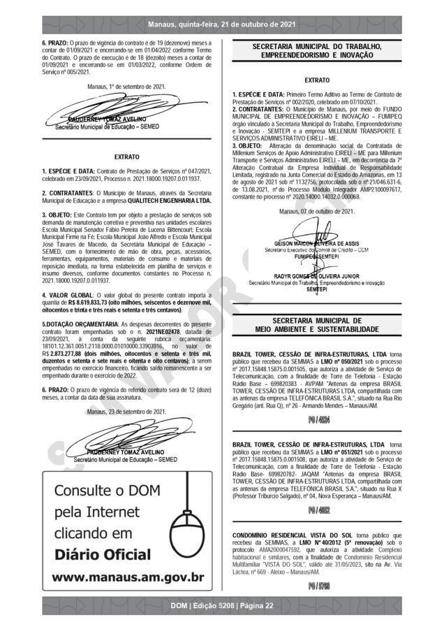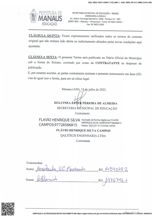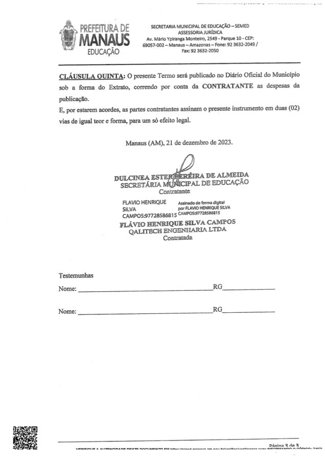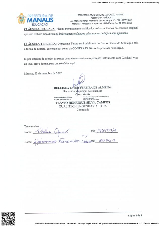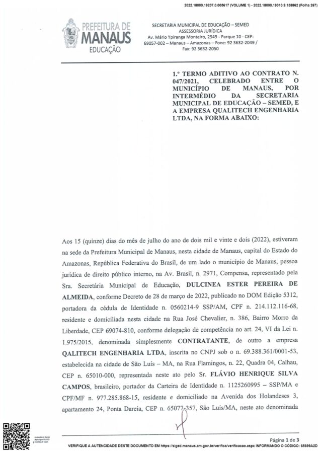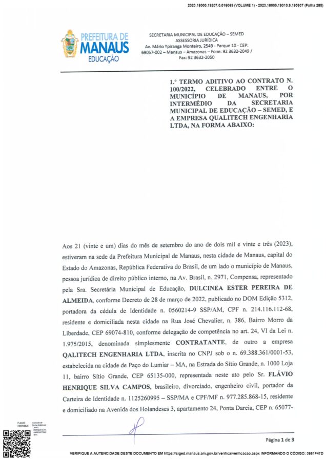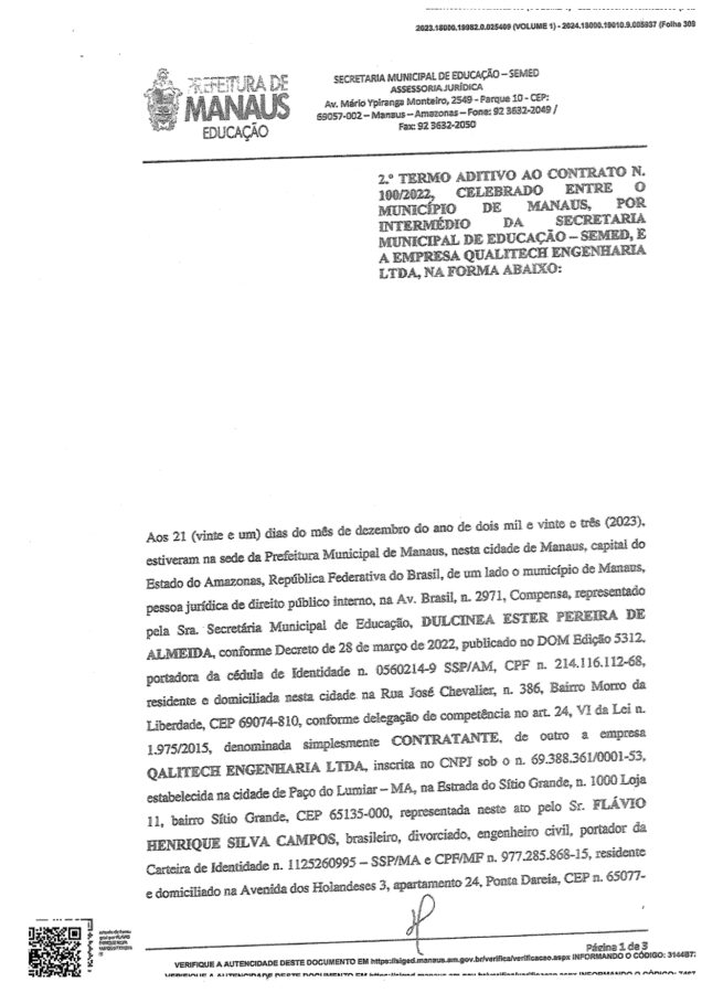 A empresa QUALITECH ENGENHARIA LTDA, que fica localizada no estado do Maranhão e tem entre seus donos o empresário Flávio Henrique Silva Campos e Frederico de Abreu Silva Campos, conseguiu vencer mais de R$ 61 milhões em contratos com a Secretaria Municipal de Educação (Semed), e a Prefeitura de Manaus.
