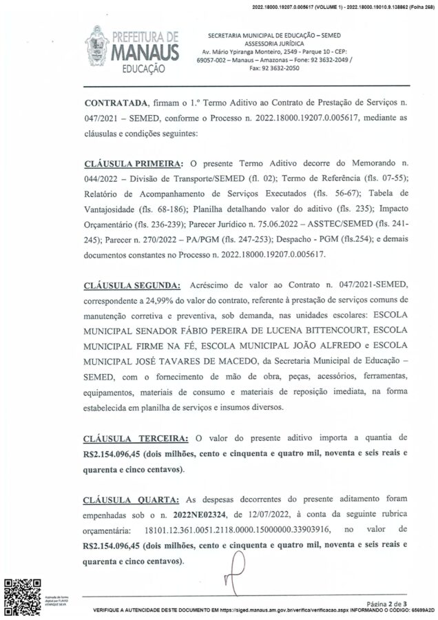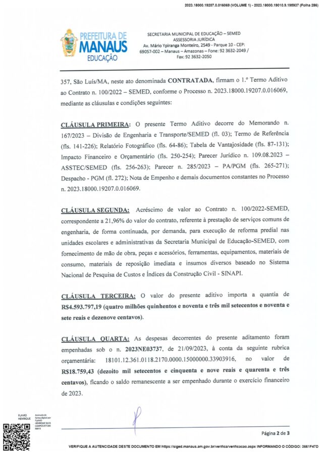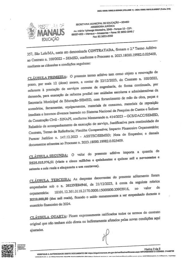 A QUALITECH ENGENHARIA LTDA tem recebido contratos e aditivamentos de contratos que giram em torno de R$ 8 milhões para manutenção de prédios administrados pela Semed em Manaus.