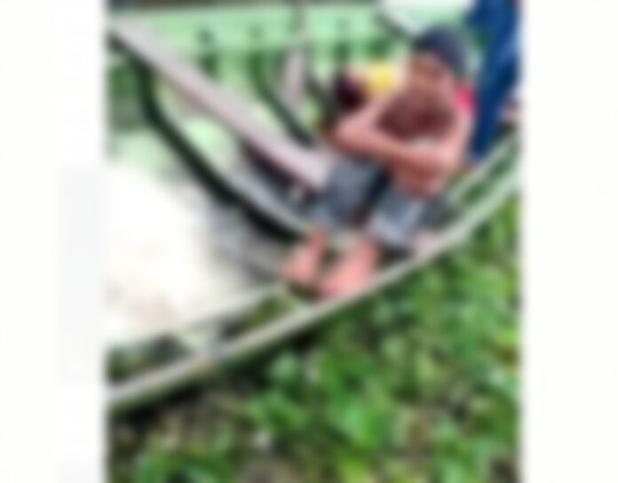 O pescado foi morto dentro da canoa onde estava seu filho. A criança e os familiares ficaram desesperada quando o corpo chegou na canoa na beira do Rio Amazonas.