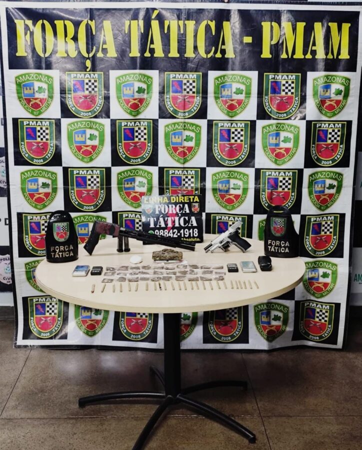 Na madrugada desta quinta-feira (19/06), por volta da 1h20, uma equipe da Força Tática realizava patrulhamento pelo bairro São Francisco, em Manaus, quando foi informada por um transeunte sobre a presença de indivíduos comercializando entorpecentes em um beco na Rua Sátiro Dias.