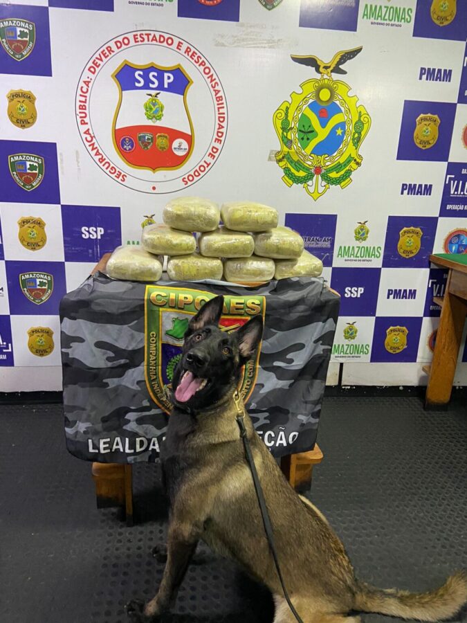 Conforme o relatório, a equipe da Polícia Militar do Amazonas (PMAM) realizou abordagem na embarcação Expressa Arthurio´s, oriunda do município de Japurá (a 744 quilômetros de Manaus). Durante a inspeção, a cadela Athena de faro para narcóticos da Companhia Independente de Policiamento com Cães (CipCães), sinalizou que no interior de uma mala havia entorpecentes.