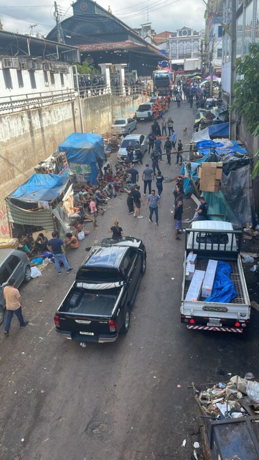 Policiais militares e civil atuam com o foco de prender traficantes e investigar a atuação de facções criminosas na região do bairro Centro, zona Sul de Manaus, onde usuários estavam criando uma “cracolândia”, em ruas em torno do Mercado Municipal Adolpho Lisboa.