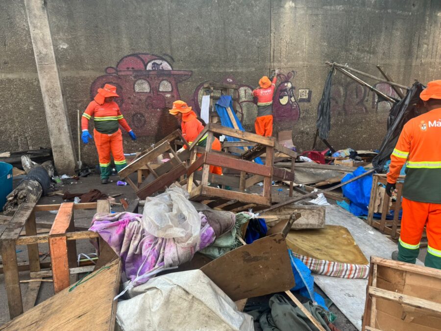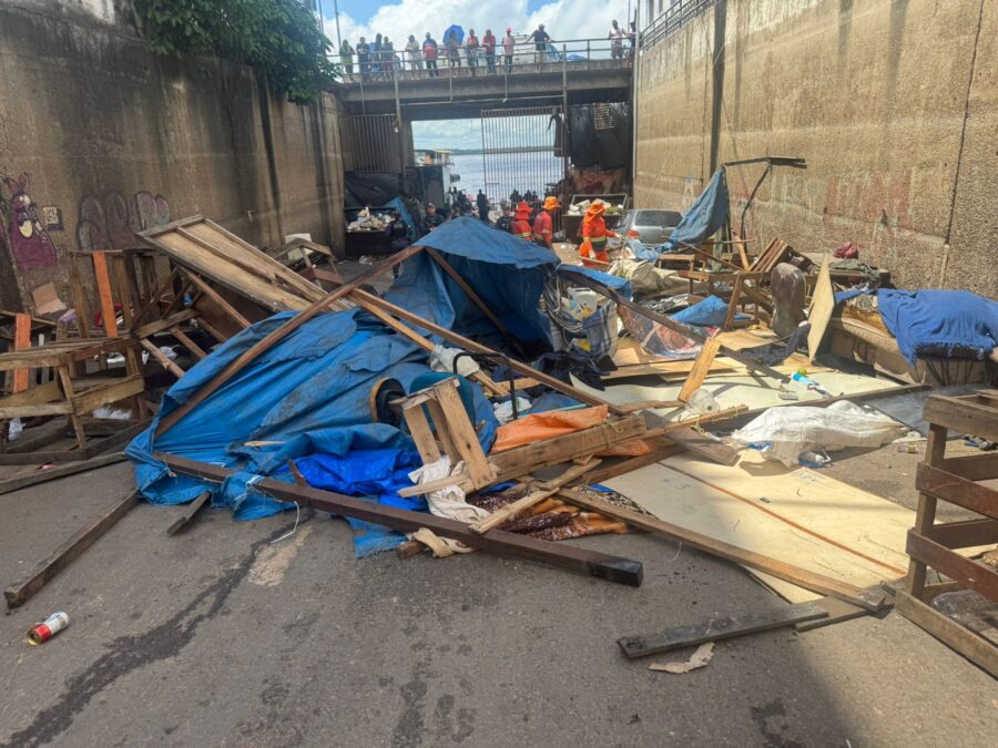 Agentes da Prefeitura de Manaus agem para retirar as moradias improvisadas, feitas por pessoas em situação de rua e usuários, que dominaram a região do Centro Histórico de Manaus.