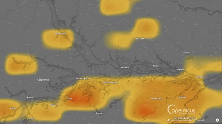 “São muitos focos em Autazes e no sul de Careiro da Várzea, com vento soprando de sul-sudeste para norte-noroeste em direção a Manaus. Direção da trajetória parecida com a da pluma saindo dos focos do município de Manaquiri e chegando em Manacapuru”, explica o coordenador do Programa de Monitoramento de Queimadas e Incêndios Florestais por Satélites do Inpe, Alberto Setzer.