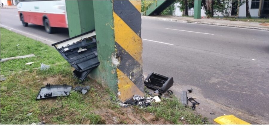 Um homem identificado como Rafael Barros de 27 anos, morreu após colidir o carro que dirigia uma Pajero com a coluna de uma passarela na avenida Torquato Tapajós, no bairro de Flores na zona Centro-Sul na madrugada desta terça-feira (17).