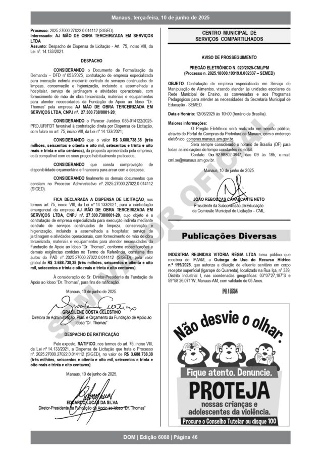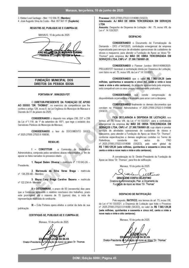 O Ministério Público de Contas (MPC), Ministério Público do Amazonas (MP-AM) e o Tribunal de Contas do Estado do Amazonas (TCE-AM) devem investigar os contratos.