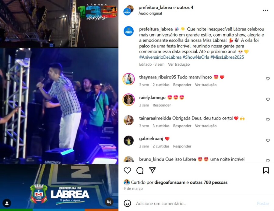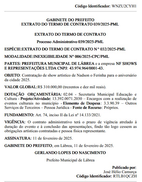 Três semanas após festividades de aniversário do município de Lábrea, no interior do Amazonas, o prefeito Gerlando Lopes (PL), decidiu publicar o valor do pagamento do show do cantor Nadson Ferinha, que custou aos cofres do município mais de R$ 300 mil reais.