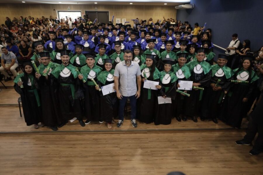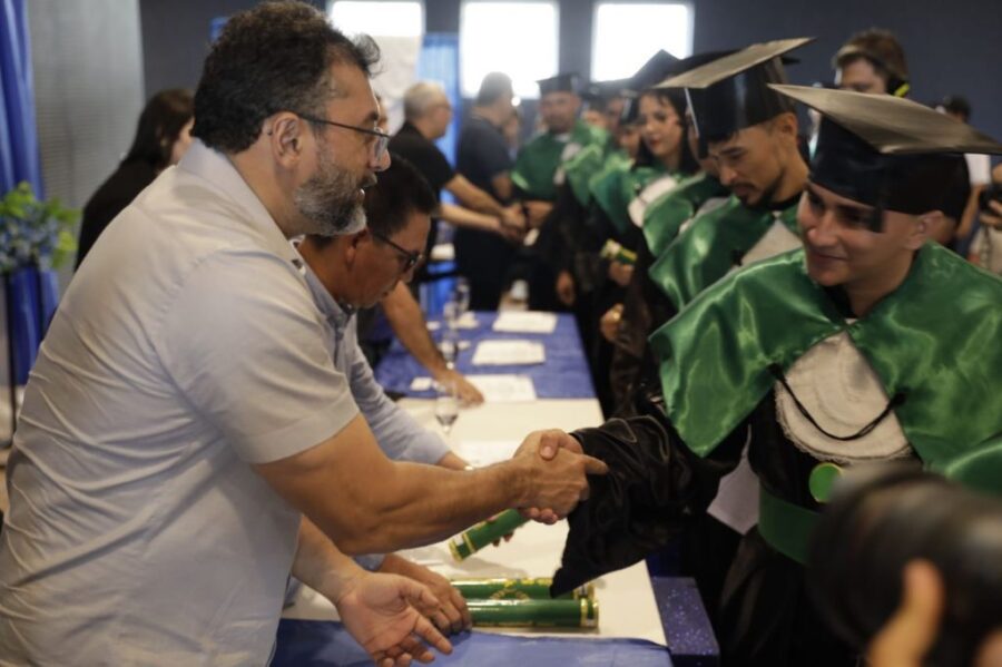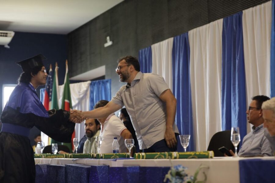 O governador Wilson Lima destacou, nesta sexta-feira (15/08), que a formação técnica de qualidade é um caminho direto para gerar emprego e renda no interior. A afirmação foi feita durante a formatura das primeiras turmas do Centro de Educação Tecnológica do Amazonas (Cetam) em Silves, fruto da parceria entre o Governo do Estado e a Eneva, que qualificou mais de 80 alunos em três cursos e já garantiu a contratação de parte dos novos profissionais para atuar no Complexo do Azulão.